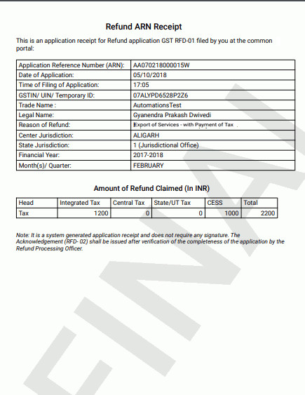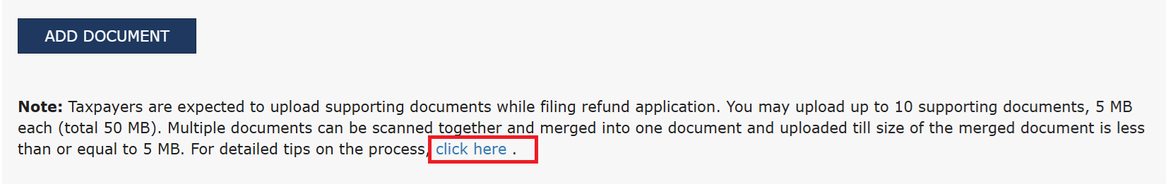 Note 2: The same invoice cannot be used in filing another refund application, a note regarding the same will be displayed on the screen.